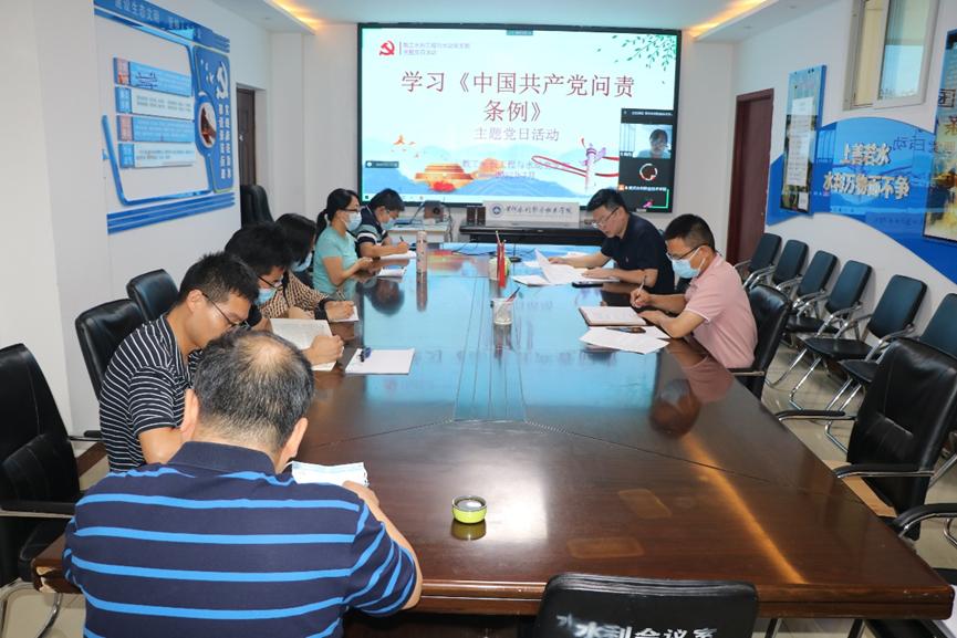 2022年7月23日下午,水利工程学院党总支教工水利工程与水动支部在5号实训楼5312会议室召开以案促改组织生活会,支部全体党员以线下线上方式出席了会议,会议由支部书记职保平同志主持。