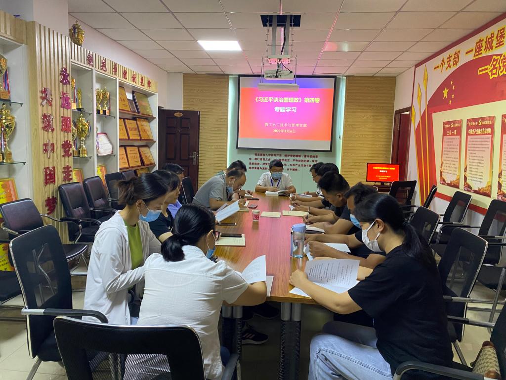 “让人民生活幸福是‘国之大者’,这从来不是一纸空谈,而是脚踏实地的行动……”9月6日下午,《习近平谈治国理政》第四卷专题学习会正在教工水工技术与管理支部火热进行。本次学习由支部书记王建伟同志主持,支部全体党员参加了本次学习。