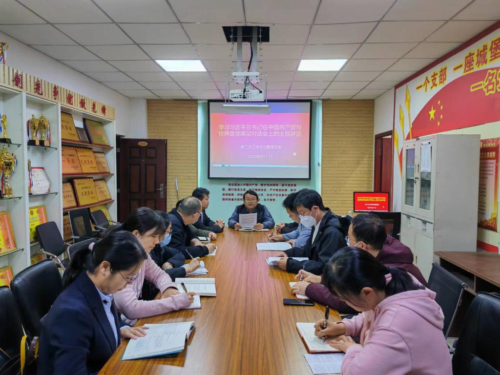 4月11日下午,教工水工技术与管理支部全体党员在SY5306学习习近平总书记在中国共产党与世界政党高层对话会上《携手同行现代化之路》的主旨讲话,会议由支部书记王建伟同志主持。