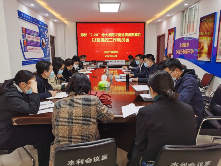 2022年4月5日,水利工程学院党总支在SY5312召开郑州“7.20”特大暴雨灾害追责问责案件以案促改工作部署动员会。院领导班子成员、科级以上干部、教研室主任、专带头人参加会议。会议由党总支书记孙天星主持。