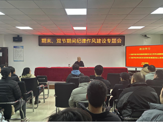2024年12月31日下午,水利工程学院在实训5310会议室召开期末、双节期间纪律作风建设的专题会议。此次会议旨在加强学院近期的纪律作风建设,确保期末各项工作顺利进行,并为即将到来的双节营造良好的工作氛围,会议由党总支书记王建设主持,全体教职工参会。