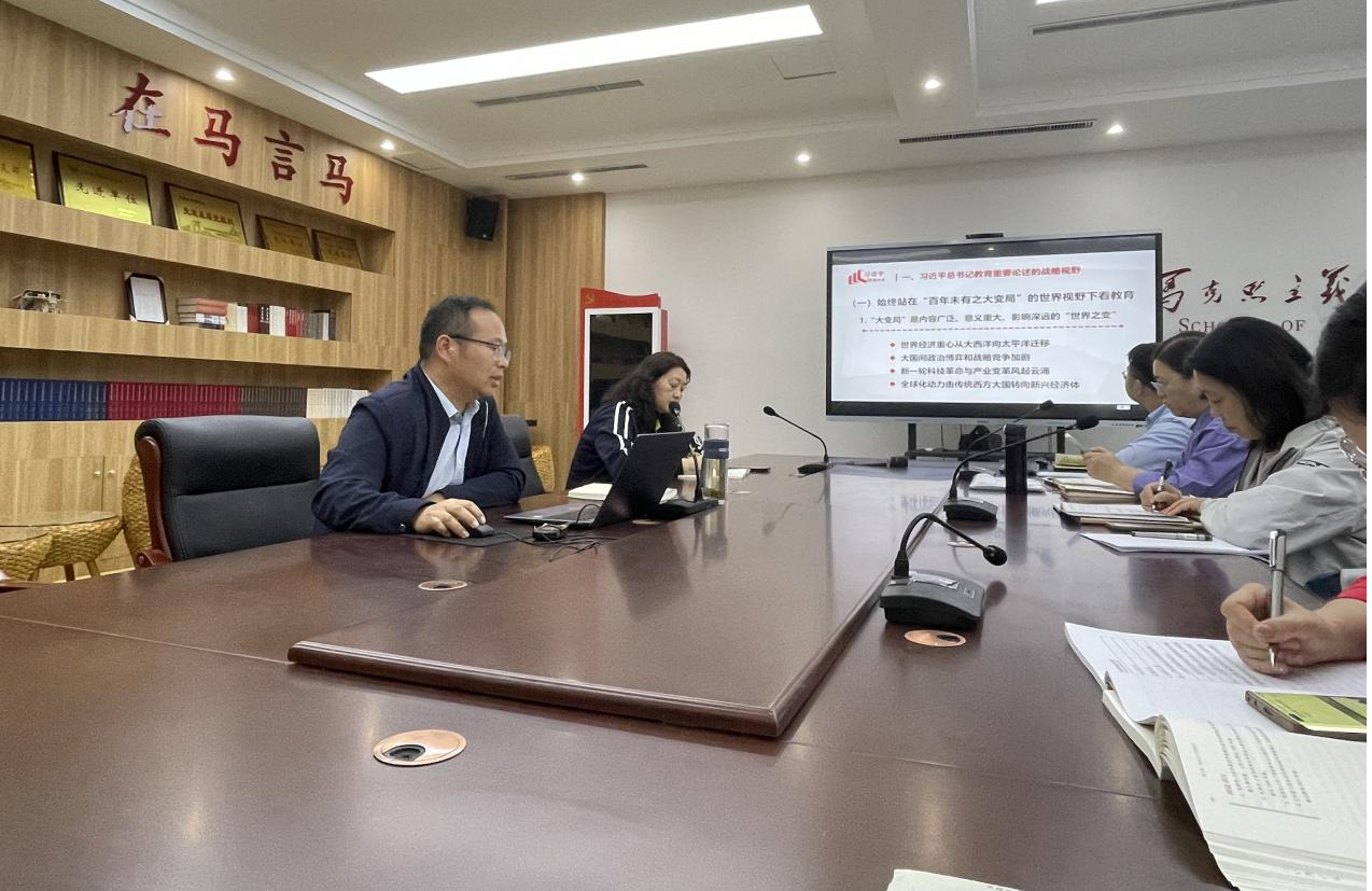 为深入学习贯彻习近平总书记《论教育》和全国教育大会上的重要讲话精神,完整理解新时代中国特色社会主义教育理论体系,把握党对教育规律的新认识,切实提高教师师德涵养与职业素养。10月15日下午,马克思主义学院党总支书记杜丙辰在会议室领学全国教育大会精神并讲授“深入学习理解习近平总书记教育重要论述”专题党课,全院教师参会学习。