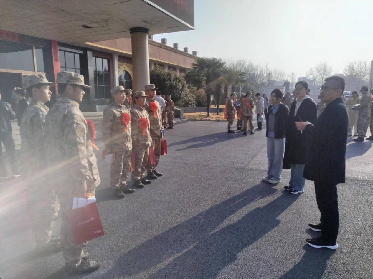 3月15日上午,我院党总支副书记孟宪金、辅导员代表王朦诗、张艺博、云宇到开封市民兵训练基地看望慰问在此集训的我院秋季入伍的学生,为即将分赴军营、参军报国的新兵送行。