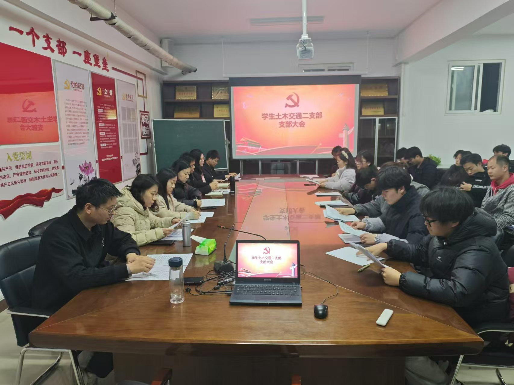 为做好党员发展工作,加强党的基层组织建设,凝聚新力量,学生土木交通二支部于2024年12月5日在5号实训楼5319召开支部大会,研究讨论了接收预备党员事宜。学生土木交通二支部书记牛贺洋老师、组织委员王梦瑶老师、宣传委员靳玉娟老师、教师党员李玲玲老师、云宇老师、王康康老师及本批党员发展对象参会,本次会议由学生土木交通二支部组织委员王梦瑶老师主持。