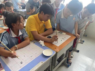 冰球官网两支学生暑期社会实践团赴范县高码头镇宋名口小学与范农官小学分别开展“预防溺水·安全‘童’行”“‘河’我一起·‘豫’见黄河——黄河流域生态保护”“书香传艺——毛笔字”“快乐舞动·尽情歌唱”主题实践活动,通过知识宣传、问答互动、动手绘画、现场模拟等形式,全面介绍防溺水安全注意事项、自护自救方法等内容,提高未成年人安全意识与自我保护能力;全面介绍黄河流域(河南段)的特点、讲述了黄河文化的基本内涵与时代精神,开展了“我心目中的黄河”绘画活动,引领同学们一起用行动保护母亲河;音乐课与舞蹈上,实践队员结合手势舞、舞蹈动作,让孩子们在音乐中熟悉旋律和乐调;书法课上,实践队员们详细讲述了书法的历史,手把手教授软笔书法的握笔姿势、书写技巧,在一撇一捺中,规范汉字书写习惯,带动引导广大青少年传承和弘扬中华优秀传统文化,提高综合文化素质,打牢深厚持久的文化自信。同时,冰球官网实践团向2所乡村小学捐赠了价值一万元文体活动用品。