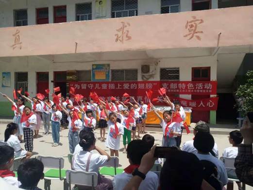 丰富多彩的文艺活动。支部组织入党积极分子为孩子们带来了《歌唱祖国》等歌曲和《少年英雄》诗朗诵等文艺节目,让孩子们从歌声中体会到党的深切关怀,激发孩子们“感党恩、听党话、跟党走”的赤子之心。这是对留守儿童们思想与灵魂的深刻洗礼,是对红色精神的一种张扬与传承。随后,孩子们也表演了《听我说谢谢你》《快乐的00后》《童心向党》等精彩的舞蹈表演。