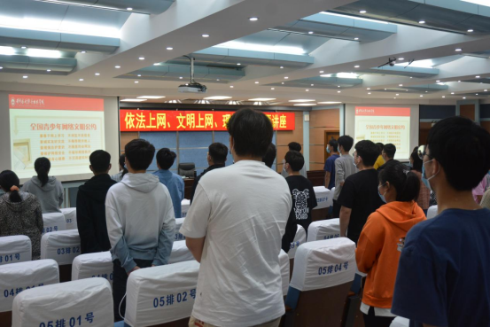 首场讲座由党委宣传部副部长杜丙辰主讲,他以《建设清朗网络空间 争做新时代中国好网民》为题,分享了网络文明建设的重大意义,如何树牢网络文明意识、建设清朗网络空间,如何践行社会主义核心价值观、争做中国好网民等,强调网络空间不是法外之地,要依法上网、文明上网、理性上网。最后,在他的领学下,师生们共同学习了全国青少年网络文明公约。