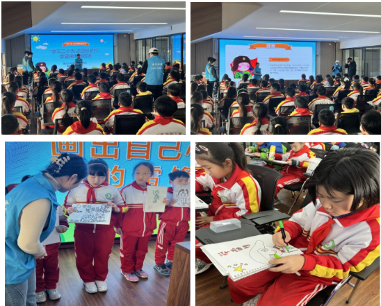 本次活动围绕学雷锋主题,以宣讲、朗诵、书画等形式,深入浅出的从雷锋简介、雷锋事迹、雷锋精神及如何在新时代践行雷锋精神四个方面进行了讲述。活动以诗朗诵《雷锋故事》开场,彭济涛同学声情并茂的朗诵,赢得了小学生们阵阵掌声;随后,由王雪珂同学带领大家一起了解、学习了雷锋故事,阐明雷锋精神的永恒价值,宣传雷锋精神的时代内涵等内容;最后陈豪同学运用自身绘画专业特长,带领小学生们一起绘制出心中的雷锋叔叔,大家争先恐后的上台展示自己的作品,并分享作为一名少先队员是如何践行雷锋精神,一名小学生说:“今天听了哥哥姐姐们的讲述,使我更加了解了雷锋精神,作为少先队员,我要从身边的小事做起,好好学习,善待他人,保护环境,团结同学等等,让雷锋精神永放光芒,我以后也要努力成为雷锋精神的传承者与宣传者。”