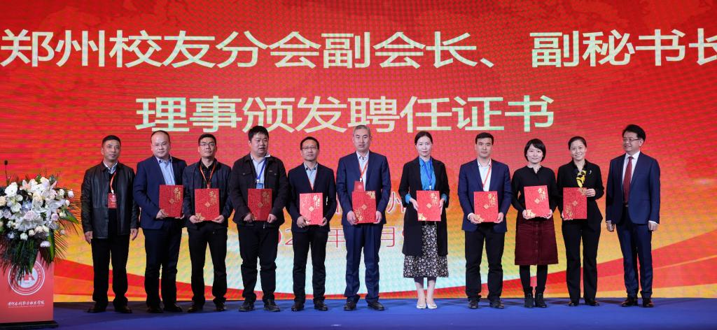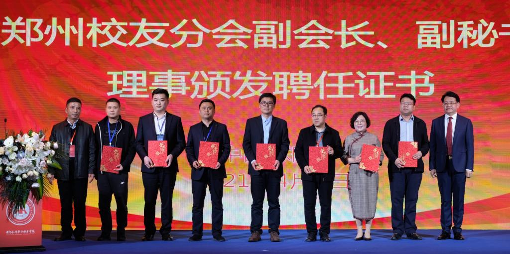 与会领导为郑州校友联络处第一届理事会成员颁发聘任证书