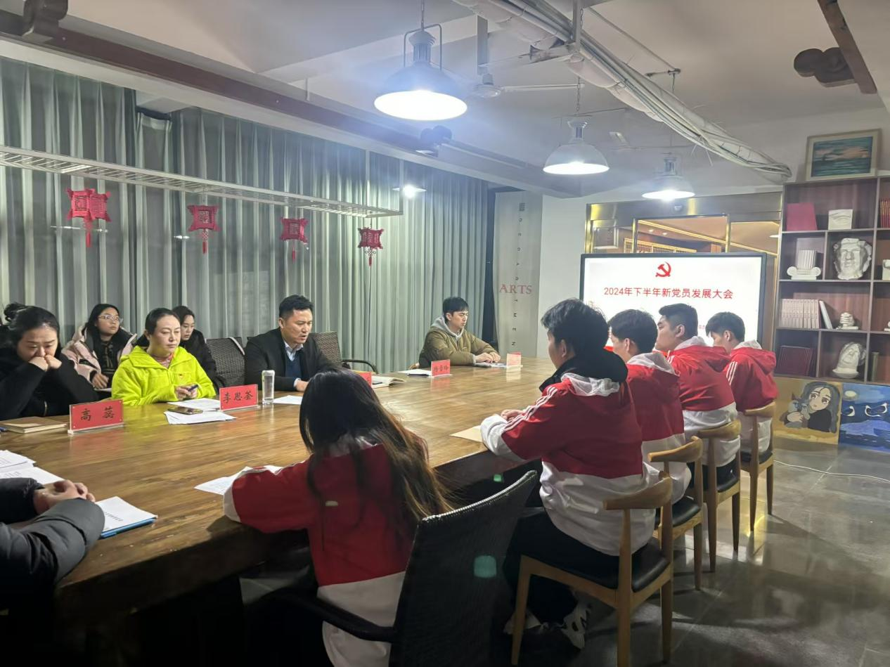 为夯实基层党组织根基,确保党员队伍生机蓬勃,为党组织源源不断地注入新鲜血液,2024年12月6日,学生艺术设计支部召开2024年下半年新党员发展大会。会议由学生艺术设计支部书记李思荟主持,党总支副书记许宗乐、组织员杨雪吟、学生艺术设计支部组织委员倪磊、党员教师高蕊以及 7 名预备党员和发展对象等学生参会。